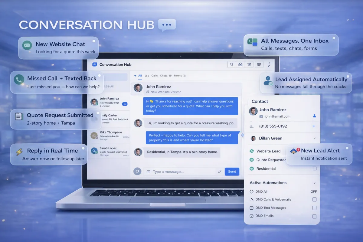 place — so you can respond faster, stay organized, and close more jobs without juggling apps.